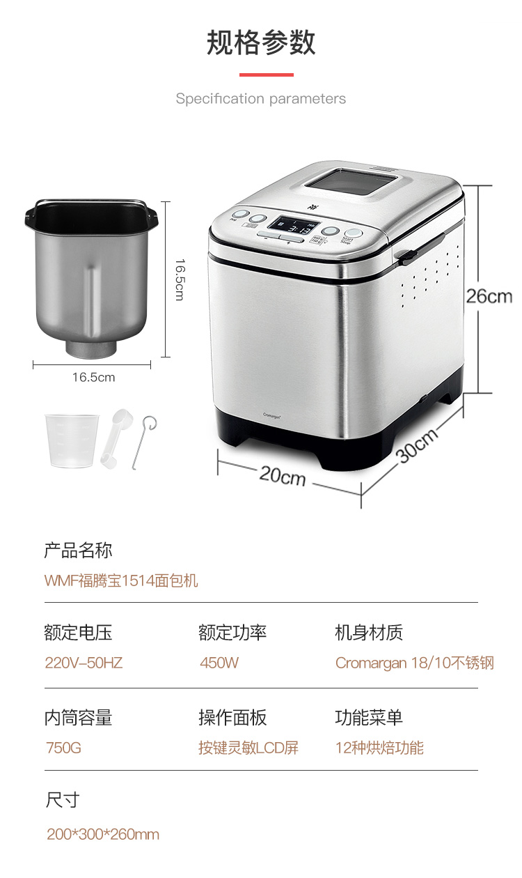 德国WMF智能面包机家用小型全自动和面揉... 当商品进行补货时,我们将以短信、邮件的形式通知您,最多发送一次,不会对您造成干扰。 |